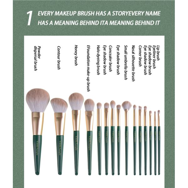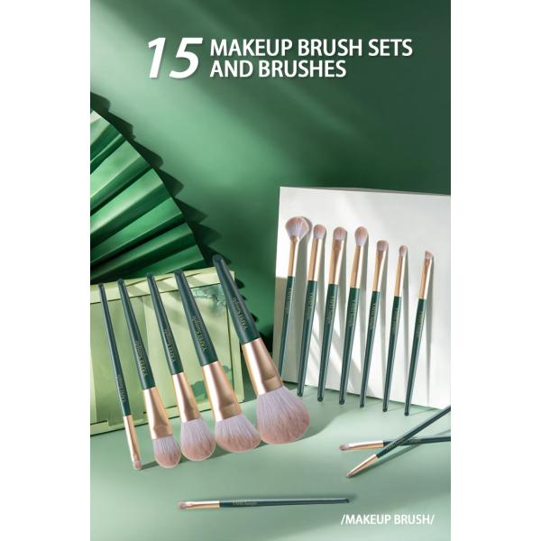 280A84915 Gold Ferrule 15 Pcs Makeup Brush Set Wooden Handle Cosmetic Brush Set Private Label Images |