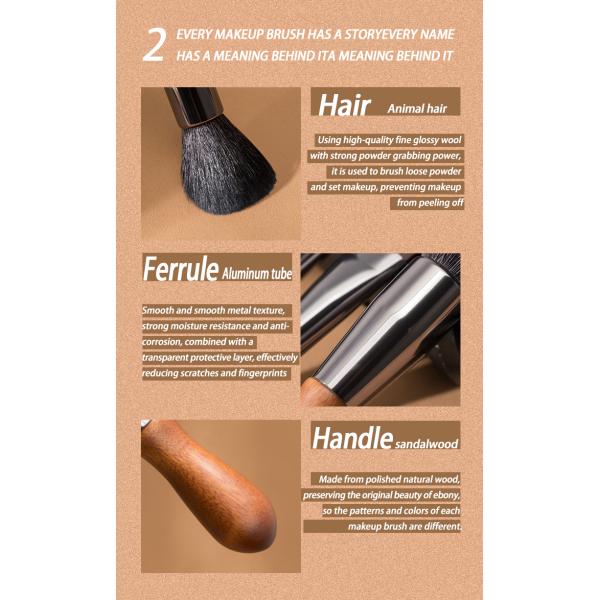 Includes : Eyeshadow Brush, Lip Brush, Angle Brush, Powder Brush, etc
